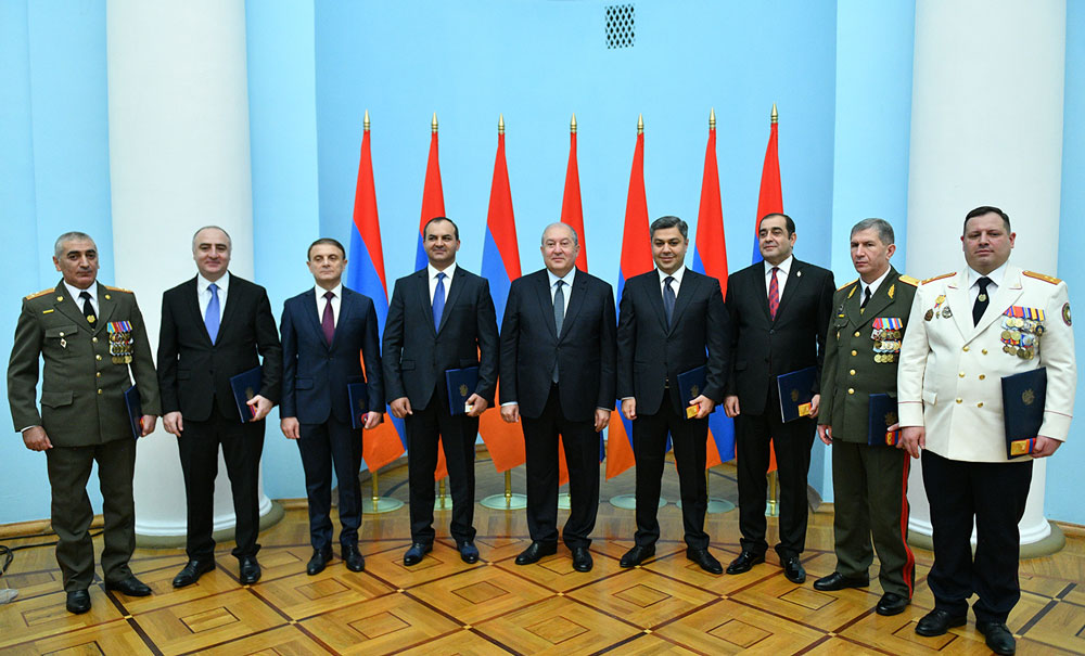 Երէկ, Երեւանի մէջ պարգեւատրուեցան խումբ մը բարձրաստիճան պետական պաշտօնատարներ, որոնց ի պատիւ մասնաւոր հաւաքոյթ մը տեղի ունեցաւ Հայաստանի Հանրապետութեան նախագահի ապարանքի երդիքին տակ։ Այսպէս, նախագահ Արմէն Սարգսեան պետական կոչումներ եւ պարգեւներ յանձնեց շարք մը բարձրաստիճան պետական պաշտօնատարներու, որոնց կարգին էին Հանրապետութեան աւագ դատախազ Արթուր Դաւթեան, ազգային անվտանգութեան ծառայութեան պետը, ոստիկանապետը, յատուկ քննչական ծառայութեան պետը, ինչպէս նաեւ բանակի, ոստիկանութեան, անվտանգութեան համակարգի եւ դատական համակարգի շարք մը պաշտօնատարներ։