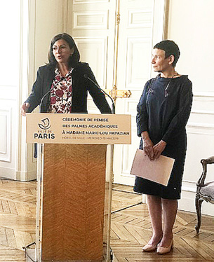 Փարիզի քաղաքապետ Անն Իտալկօ հանդիսաւոր հաւաքոյթի մը ընթացքին պարգեւատրեց Մարի-Լու Փափազեանը: