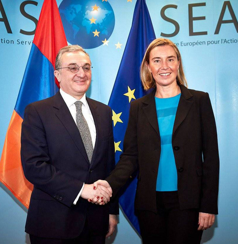 Հայաստանի Արտաքին գործոց նախարար Զօհրապ Մնացականեան երէկ Պրիւքսելի մէջ հանդիպում մը ունեցաւ Եւրոմիութեան արտաքին ու անվտանգութեան քաղաքականութեան հարցերով գերագոյն յանձնակատար, Եւրոյանձնաժողովի փոխ-նախագահ Ֆետերիքա Մոկերինիի հետ։ Պաշտօնական աղբիւրներու հաղորդումներով, հանդիպման ընթացքին քննարկուեցան Հայաստան-Եւրոմիութիւն օրակարգի շարք մը հարցեր։