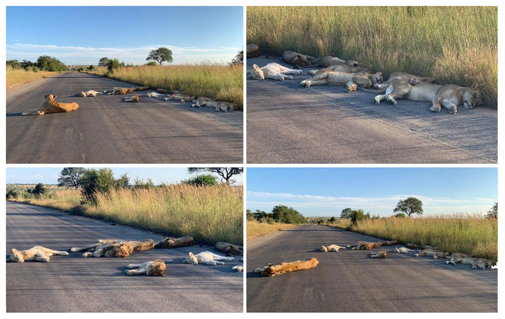 Առիւծները քնացած են երբեմնի բանուկ ճանապարհին։ Այսպէս, վաղ, թէ ուշ կենդանիները պէտք է նկատէին, որ մարդիկ անհետացած են եւ անոնք կրնան հանգիստօրէն զբաղեցնել իրենց տարածքը: