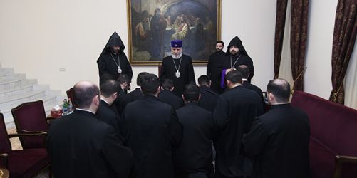 Հան­դիպ­ման ըն­թաց­քին Վե­հա­փառ Հայ­րա­պե­տը նո­րապ­սակ քա­հա­նա­նե­րուն փո­խան­ցեց իր օրհ­նու­թիւ­նը։ Ան ու­րա­խու­թիւն յայտ­նեց, թէ Հայ Ե­կե­ղեց­ւոյ հո­գե­ւո­րա­կա­նաց շար­քե­րը հա­մալ­րուած են եւս տաս­ներ­կու սպա­սա­ւոր­նե­րով։ Ըստ ի­րեն, ե­կե­ղե­ցա­կան­նե­րու կա­րի­քը մեծ է, հե­տե­ւա­բար նո­րա­ձեռ­նադ­րեալ­նե­րը ծանր բայց քաղցր լուծ մը պի­տի ու­նե­նան ի­րենց ու­սե­րուն վրայ։ Նո­րին Սրբու­թիւ­նը ե­կե­ղե­ցա­կան­նե­րուն մաղ­թեց բա­րի օ­րի­նակ ըլ­լալ եւ ի­րենց նուի­րեալ ծա­ռա­յու­թեամբ ու­րա­խաց­նել հա­ւա­տա­ցեալ ժո­ղո­վուր­դը։ Ան պատ­գա­մեց, որ մշտա­պէս ապ­րին ու գոր­ծեն հա­ւատ­քով, ինչ որ պի­տի դառ­նայ յոյս, լոյս եւ սէր հայ ժո­ղո­վուր­դի բա­րե­պաշտ զա­ւակ­նե­րուն հա­մար։