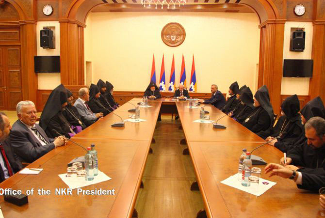 Լեռնային Ղարաբաղի Նախագահ Բակօ Սահակեան երէկ Երեւանի մէջ հիւրընկալեց Ամենայն Հայոց Տ.Տ. Գարեգին Բ. Կաթողիկոսին կողմէ գլխաւորուած Գերագոյն հոգեւոր խորհուրդի (ԳՀԽ) անդամները, որոնք ներկայիս կը գտնուին Արցախի մէջ։ «Արմէնփրէս»ի հաղորդումներով, Բակօ Սահակեան ողջունեց Գերագոյն հոգեւոր խորհուրդի ժողովին Արցախի մէջ կազմակերպումը։ Ան ընդգծեց Հայաստանեայց Առաքելական Եկեղեցւոյ կարեւորագոյն դերակատարութիւնը ազգային պետականութեան ստեղծման, կայացման ու զօրացման, Հայաստան-Արցախ-Սփիւռք եռամիասնութեան շարունակական ամրապնդման, հայ ազգային ինքնութեան եւ արժէքներու պահպանման առումով։