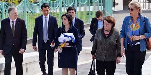 Թանգարան-կաճառը շրջելու եւ պատասխանատուներէն տեղեկութիւններ քաղելու առընթեր, Պունտեստակի ներկայացուցիչները միեւնոյն ժամանակ ծաղիկներ թողուցին Կոմիտասի արձանին մօտ, որ տեղադրուած է նոյն համալիրէն ներս։