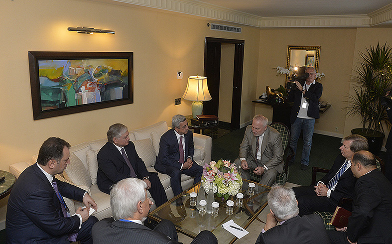 Հայաստանի Նախագահ Սերժ Սարգսեան Նիւ Եորքի մէջ հանդիպում մը ունեցաւ ԵԱՀԿ-ի Մինսքեան խմբակի համանախագահներուն՝ Իկոր Փոփովի (Ռուսաստան), Ճէյմս Ուորլիքի (Միացեալ Նահանգներ), Փիէռ Անտրիոյի (Ֆրանսա) եւ ԵԱՀԿ-ի շրջանային նախագահի յատուկ ներկայացուցիչ Անճէյ Կասպրչիկի հետ։ Նախագահ Սարգսեանի կողքին էին Հայաստանի Արտաքին գործոց նախարար Եդուարդ Նալպանտեան եւ Նախագահական աշխատակազմի ղեկավար Վիգէն Սարգսեան։
