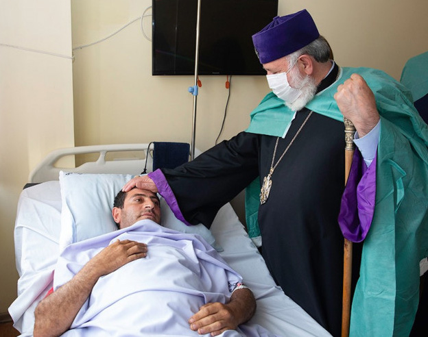 Ամենայն Հայոց Տ.Տ. Գարեգին Բ. Կաթողիկոսը երէկ այցելեց Երեւանի «Էրեբունի» բժշկական կեդրոնը, ուր դարմանման տակ կը գտնուին վիրաւոր զինուորներ։ Վեհափառ Հայրապետը այս առթիւ իր օրհնութիւնն ու շուտափոյթ ապաքինման մաղթանքները փոխանցեց վիրաւորեալ զինուորներուն։