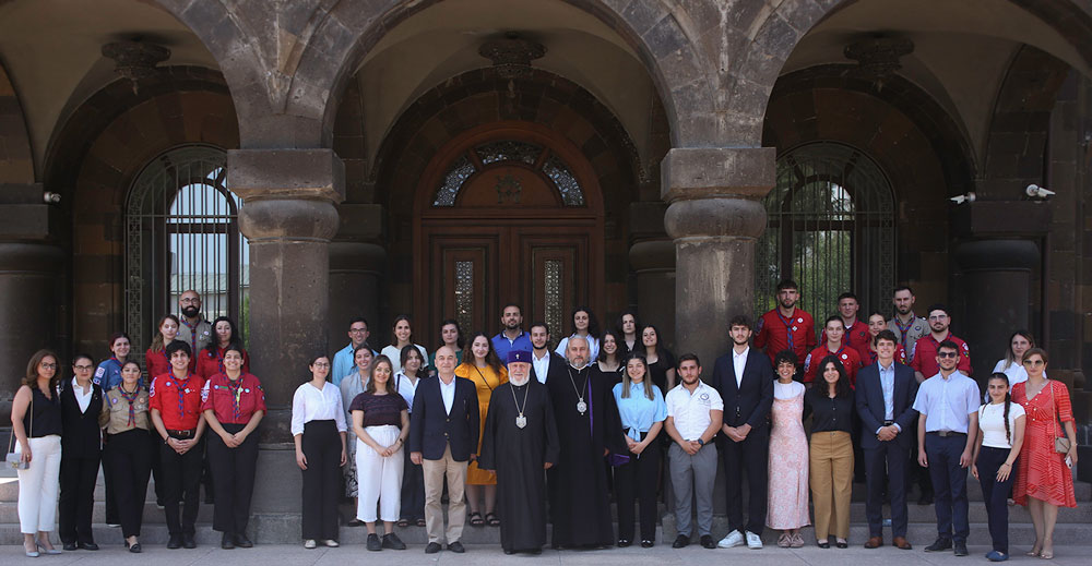 Տ.Տ. Գարեգին Բ. Ամենայն Հայոց Կաթողիկոսը երէկ Մայր Աթոռ Սուրբ Էջմիածնի մէջ ընդունեց «Ֆրանսայի հայ երիտասարդութիւն» (JAF) ընկերակցութեան Մարսէյլի մասնաճիւղէն անդամներ՝ գլխաւորութեամբ Փասքալ Շամասեանի եւ Լուսինէ Մելիքեանի։