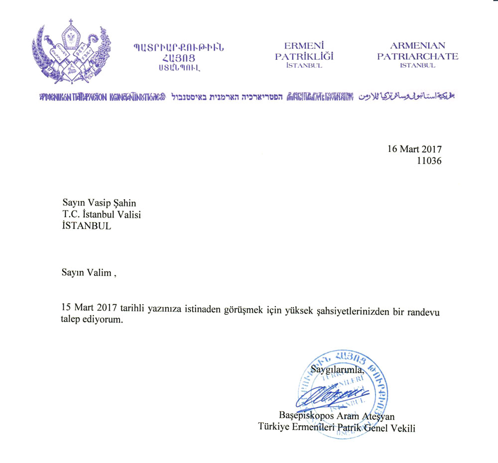Ատենապետ Պետրոս Շիրինօղլու այսօր կը տեսակցի Վաքըֆներու ընդհանուր տնօրէն Ատնան Էրթէմի հետ: